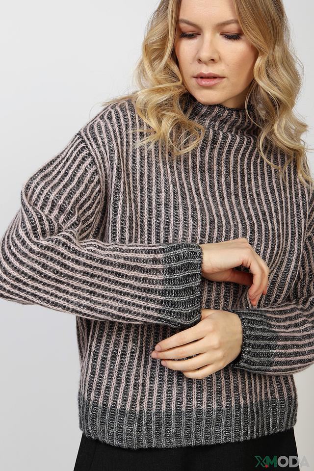 Женский пуловер Luisa Cerano серого цвета с вертикальной полоской выполнен из мягкой пряжи с добавлением мохера. Модель с высоким воротом и свободным кроем станет отличным дополнением к вашему гардеробу. Состав: шерсть 33%, полиэстер 27%, мохер 22%, полиамид 18%