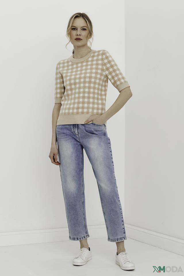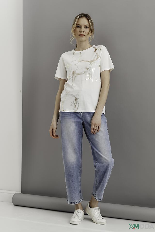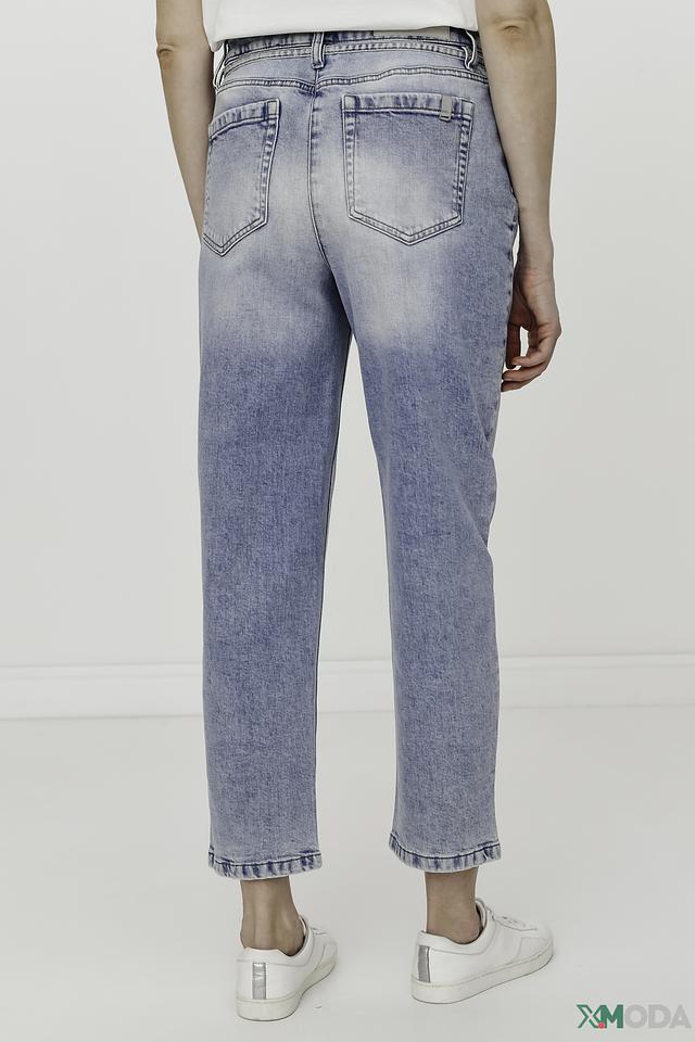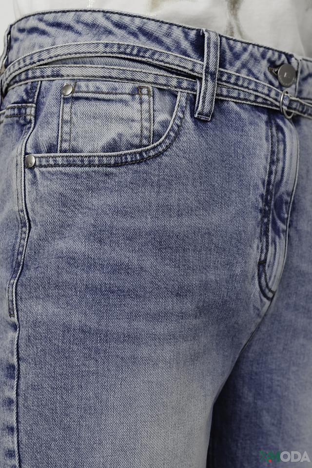 Джинсы имеют прямой крой и укороченную длину, что придает им современный и модный вид. Эффект потертости добавляет образу непринужденности и индивидуальности. Классическая застежка на молнию и пуговицу обеспечивает надежную фиксацию.