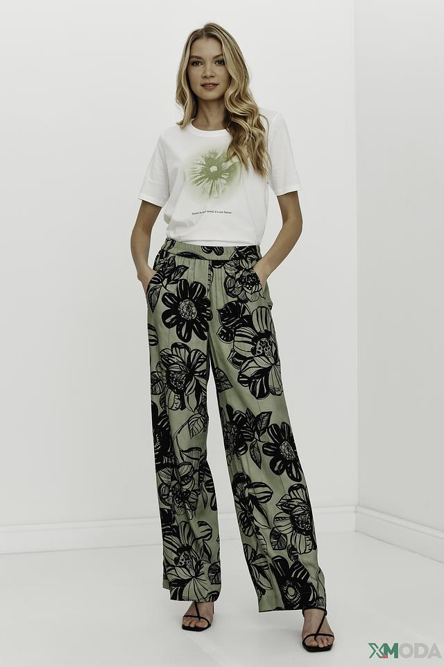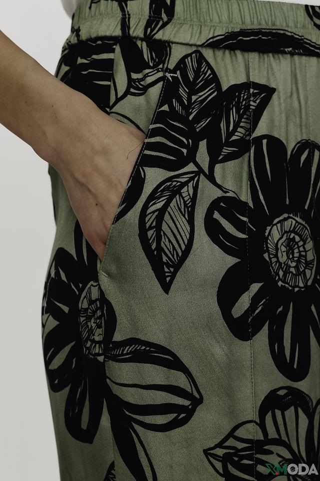 Представляем вашему вниманию стильные брюки от бренда Luisa Cerano. Эта модель выполнена в приятном оливковом цвете и украшена эффектным цветочным принтом, который добавит образу женственности и легкости.