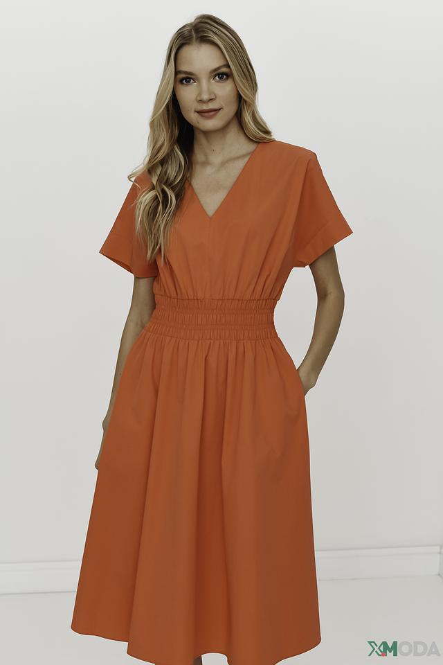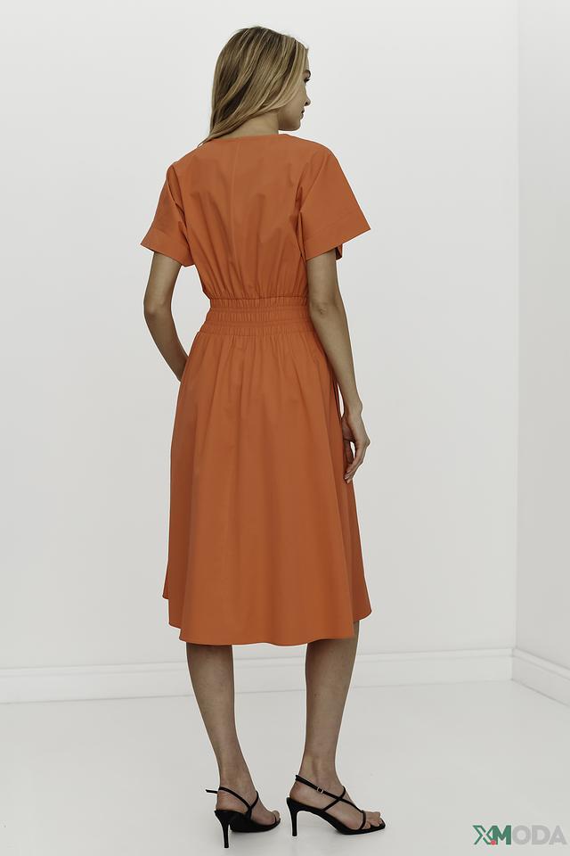 Оранжевое платье от Luisa Cerano – это стильное и комфортное решение для создания женственного образа. Платье имеет V-образный вырез, короткие рукава и эластичную сборку на талии, подчеркивающую фигуру. Состав: хлопок 93%, эластан 7%