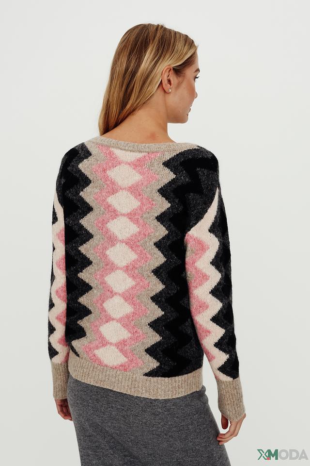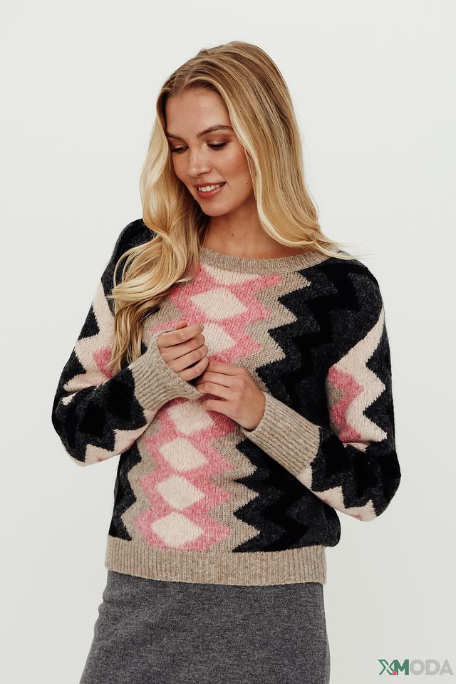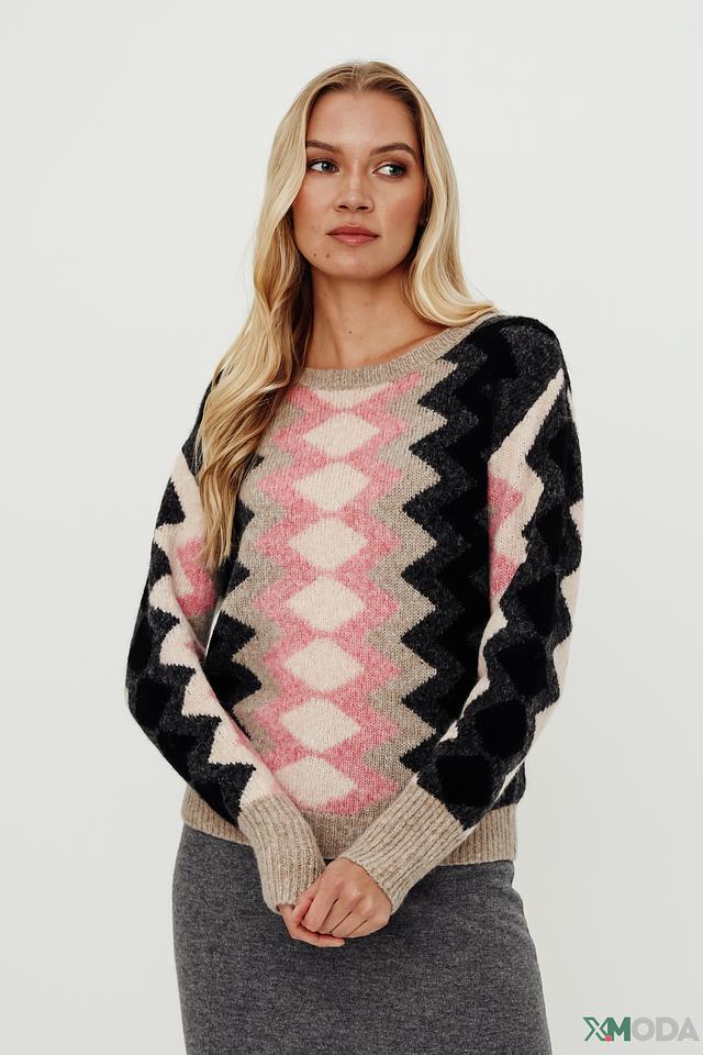 Дизайн жилета выполнен в классическом стиле с узором "ромб", сочетающим в себе оттенки бежевого, розового и черного. Такой принт добавляет изделию оригинальности и позволяет легко сочетать его с различными элементами гардероба.