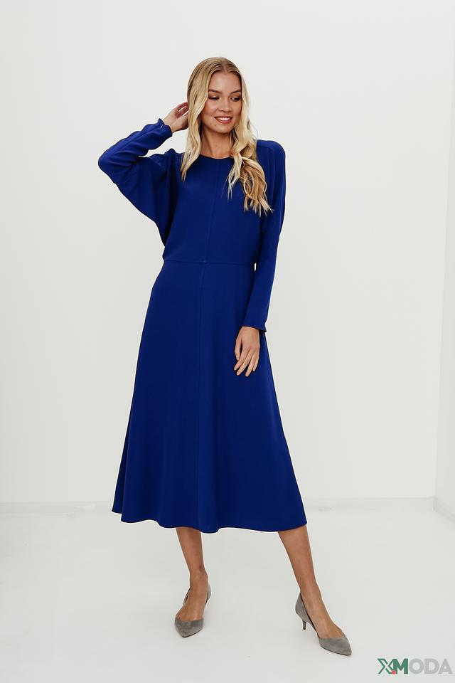 Синее платье от Luisa Cerano – элегантная модель длиной миди с рукавами-крыльями. Платье выполнено из приятной ткани с добавлением эластана, обеспечивающего комфорт при носке и сохраняющего форму. Состав: полиэстер 94%, эластан 6%
