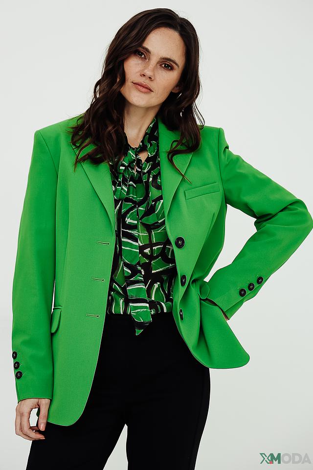 Этот жакет от Luisa Cerano выполнен в ярком зеленом цвете и станет акцентной деталью вашего образа. Модель имеет приталенный силуэт, который подчеркивает фигуру, и классический лацкан. Жакет застегивается на пуговицы в тон изделия.