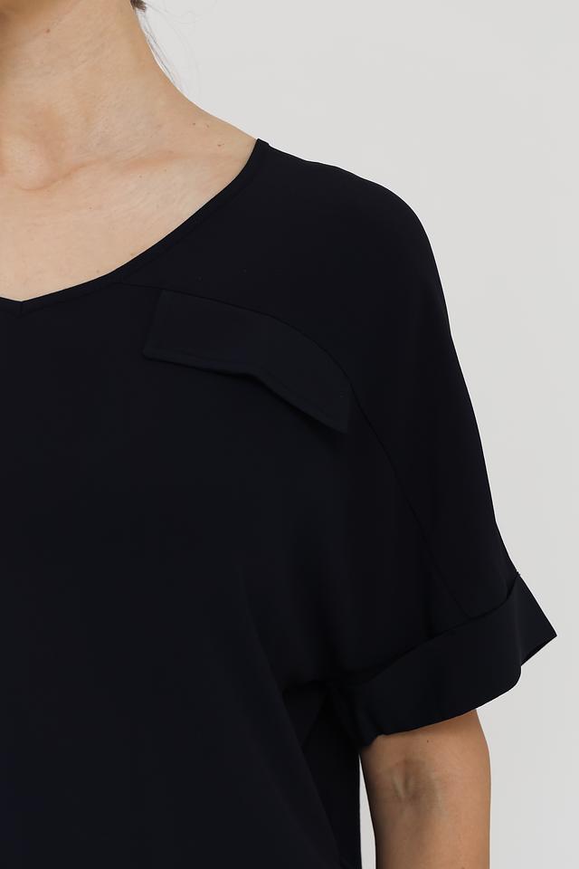 На плече блузы расположен декоративный накладной карман, который добавляет модели оригинальности и стиля.