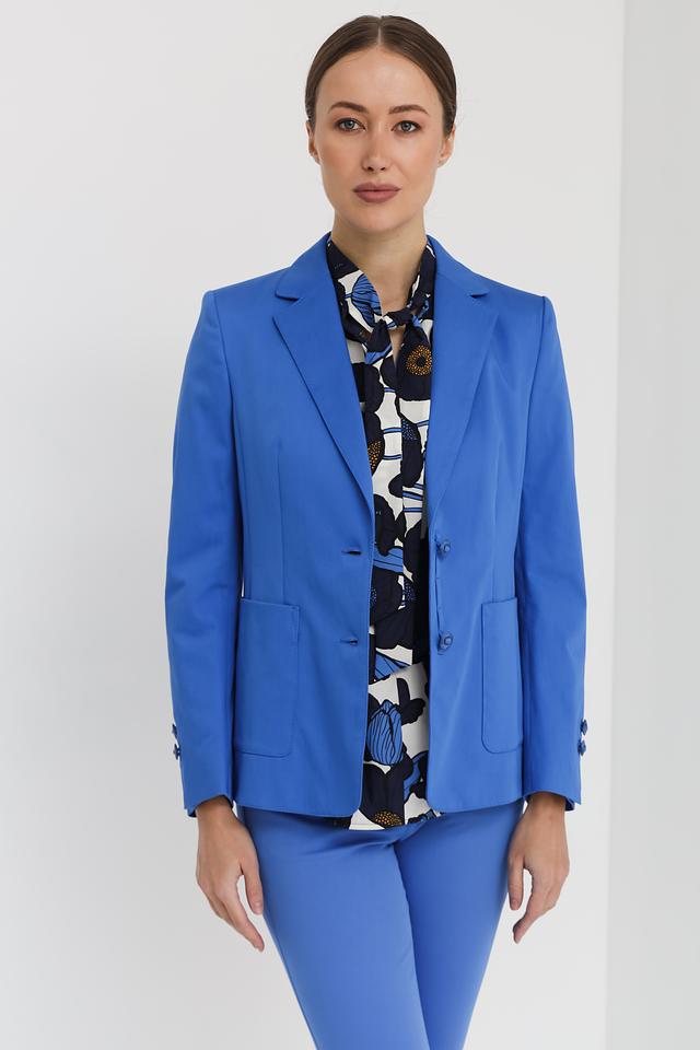Этот жакет от Luisa Cerano станет прекрасным дополнением к вашему гардеробу. Классический крой и яркий синий цвет делают его универсальным элементом, подходящим для различных случаев.