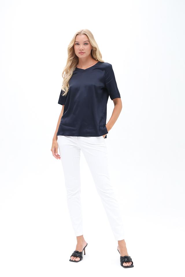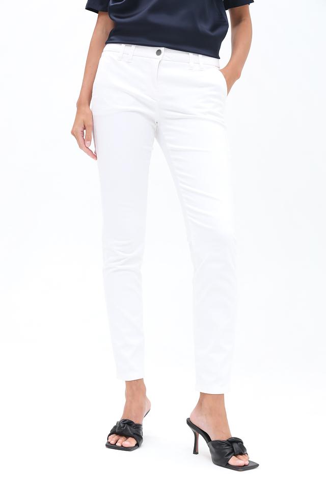 Модель имеет стандартную посадку на талии, застежку на молнию и пуговицу. Лаконичный дизайн без лишних деталей подчеркивает элегантность и сдержанность стиля Luisa Cerano. Состав: хлопок 96%, эластан 4%.