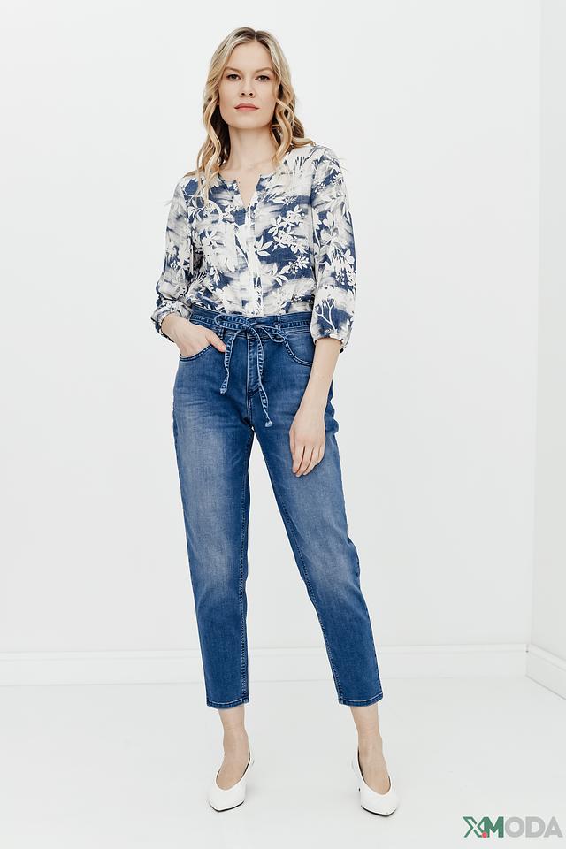Женские джинсы MAC синего цвета с высокой посадкой и поясом-завязкой. Модель выполнена в стиле casual с эффектом потертости и имеет удобный крой. Состав: хлопок 92%, полиэстер 6%, эластан 2%