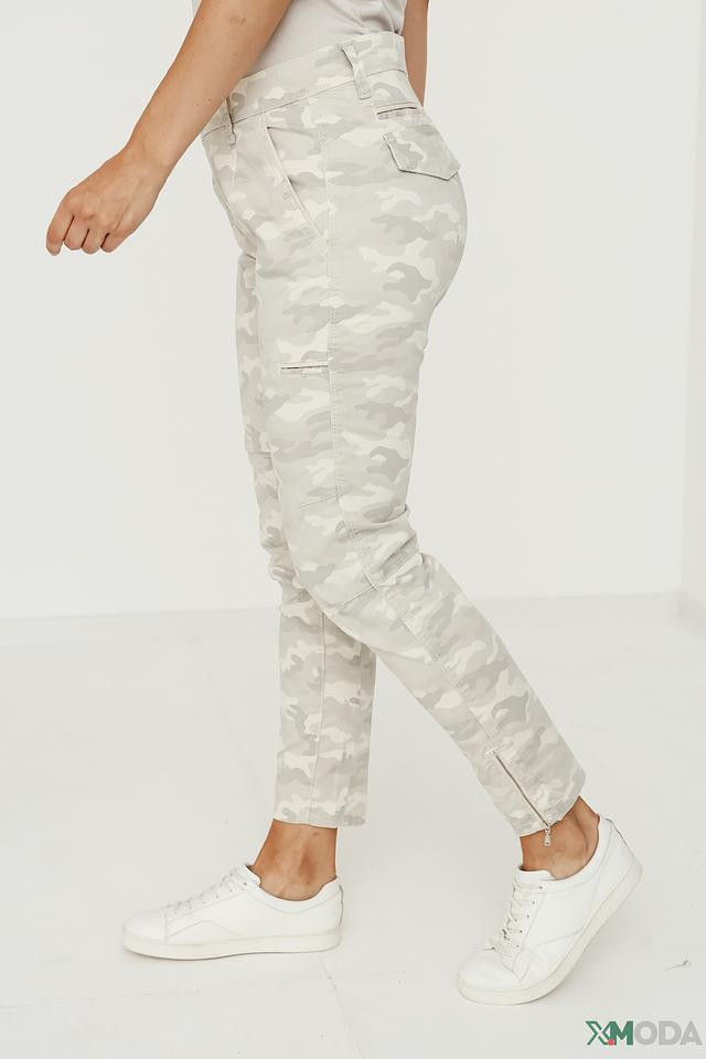 Женские брюки от MAC цвета хаки с принтом камуфляж – стильное и удобное решение для повседневного образа. Модель выполнена из хлопка с добавлением эластана, что обеспечивает комфорт при носке и свободу движений. Состав: хлопок 97%, эластан 3%