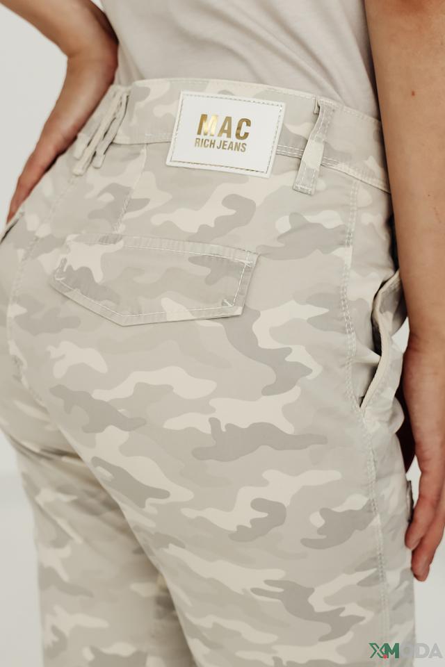 Представляем стильные брюки от бренда MAC, выполненные в актуальном цвете хаки с модным принтом камуфляж. Эта модель станет отличным дополнением к вашему гардеробу, позволяя создавать разнообразные образы в стиле кэжуал.