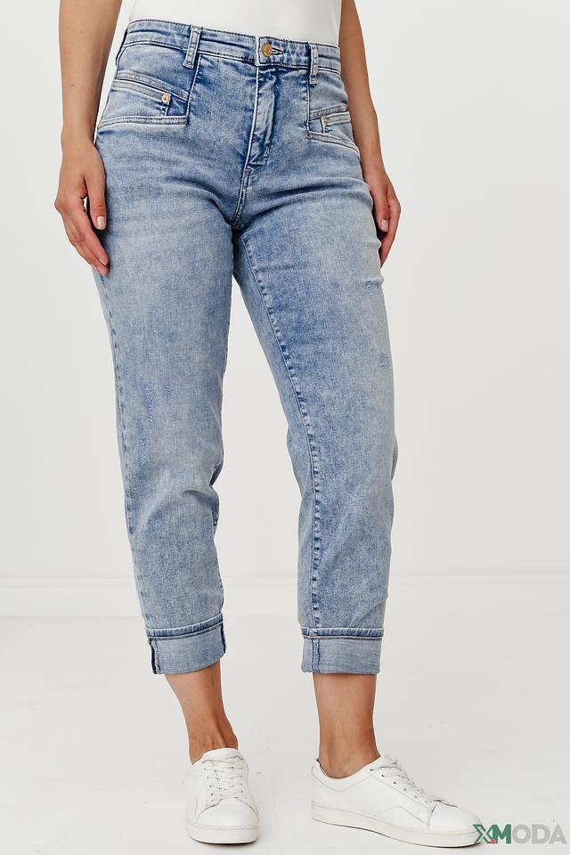 Голубые джинсы MAC с эффектом потертости и завышенной талией — стильное и комфортное решение для повседневного образа. Модель выполнена из качественного денима с добавлением эластана для удобной посадки. Состав: хлопок 71%, полиэстер 16%, лиоцел 11%, эластан 2%