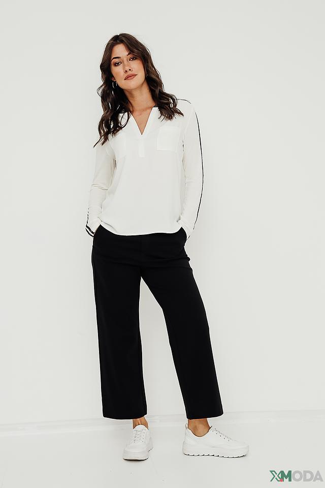 Брюки имеют удобную посадку по талии и слегка расширяющийся книзу силуэт, что визуально удлиняет ноги и создаёт женственный образ. Высокое содержание вискозы в составе ткани обеспечивает мягкость и приятные тактильные ощущения.