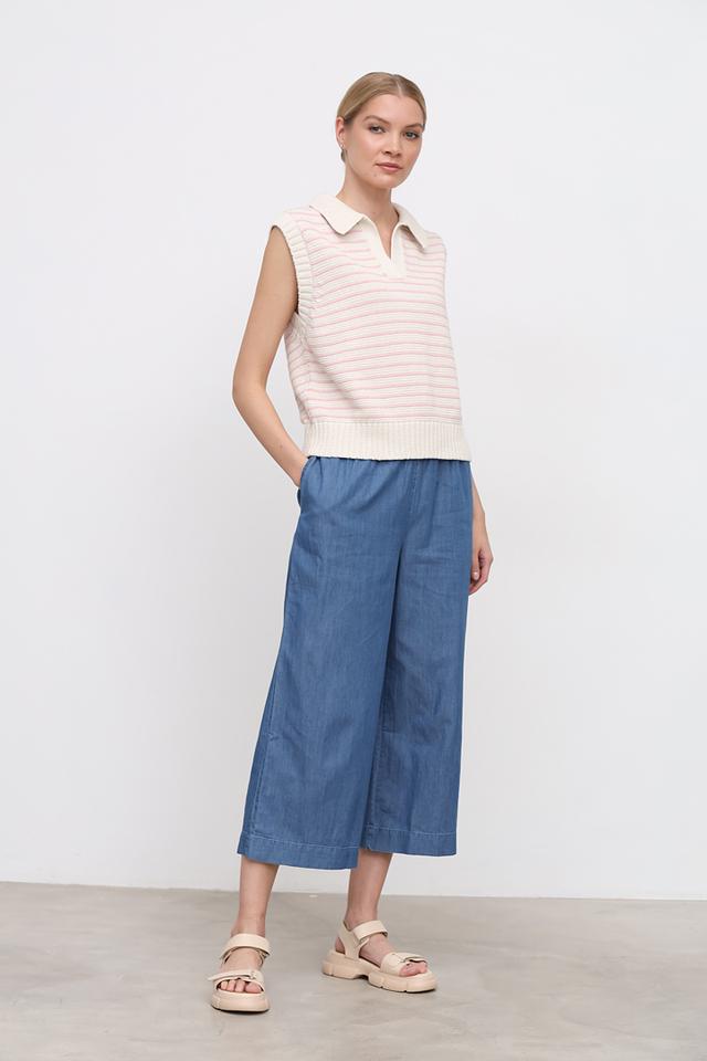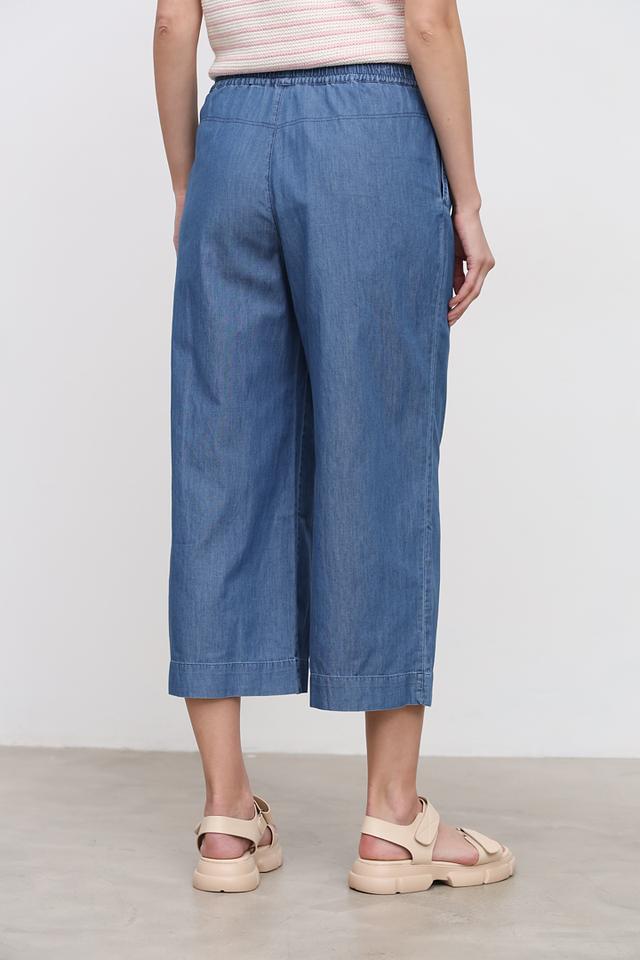 Брюки Maerz цвета деним – это стильная и комфортная модель кюлотов. Изготовлены из 100% хлопка, обеспечивающего удобство в носке. Пояс на резинке и свободный крой делают эти брюки идеальным выбором для повседневной носки. Состав: хлопок 100%