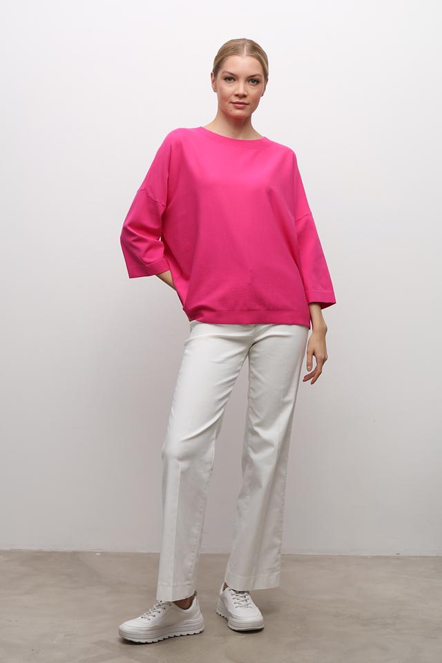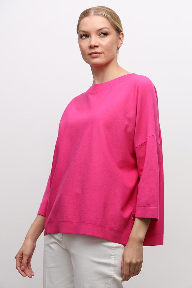 Женский пуловер Maerz фуксии цвета – это стильная и комфортная модель с рукавом 3/4. Свободный крой и мягкая вискоза делают его идеальным выбором для создания повседневных образов. Пуловер отлично сочетается с брюками и юбками. Состав: вискоза 70%, полиэстер 30%