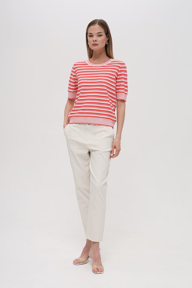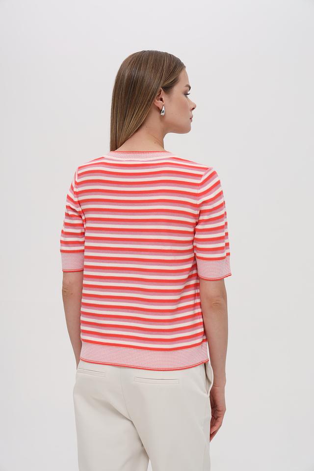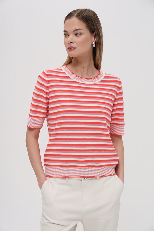 Женский пуловер Maerz кораллового цвета с полосками станет отличным дополнением к вашему гардеробу. Модель выполнена из мягкого хлопкового трикотажа с добавлением вискозы, что обеспечивает комфорт и приятные ощущения при носке. Короткий рукав делает этот пуловер идеальным для теплой погоды. Состав: хлопок 70%, вискоза 23%, полиэстер 7%