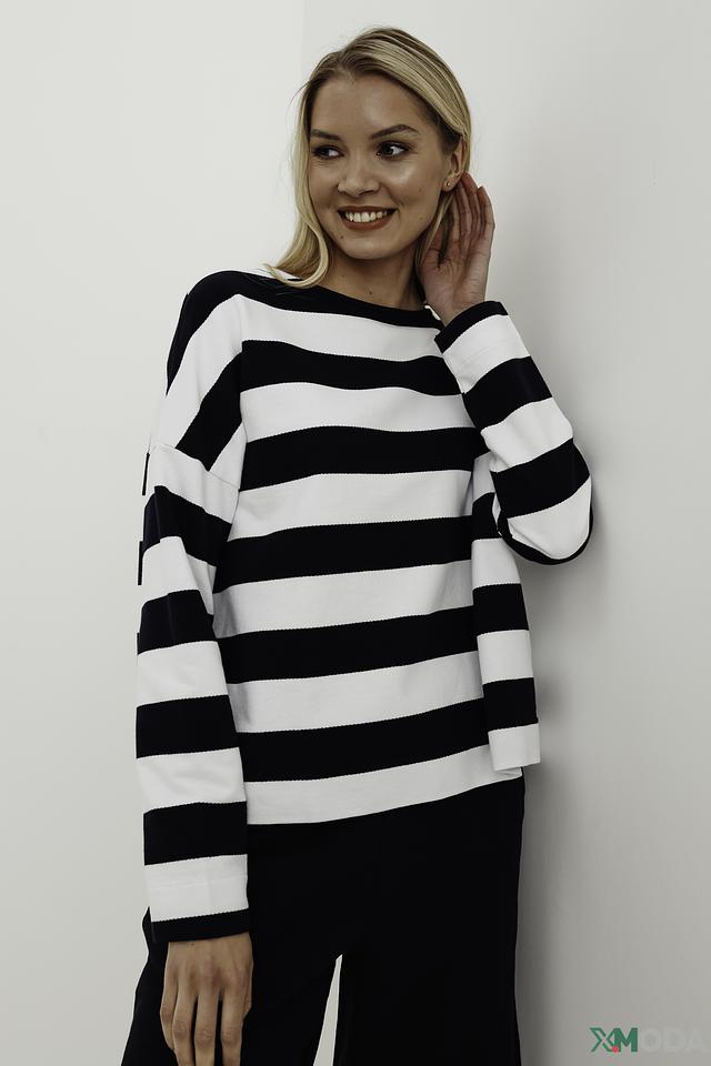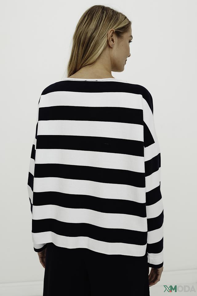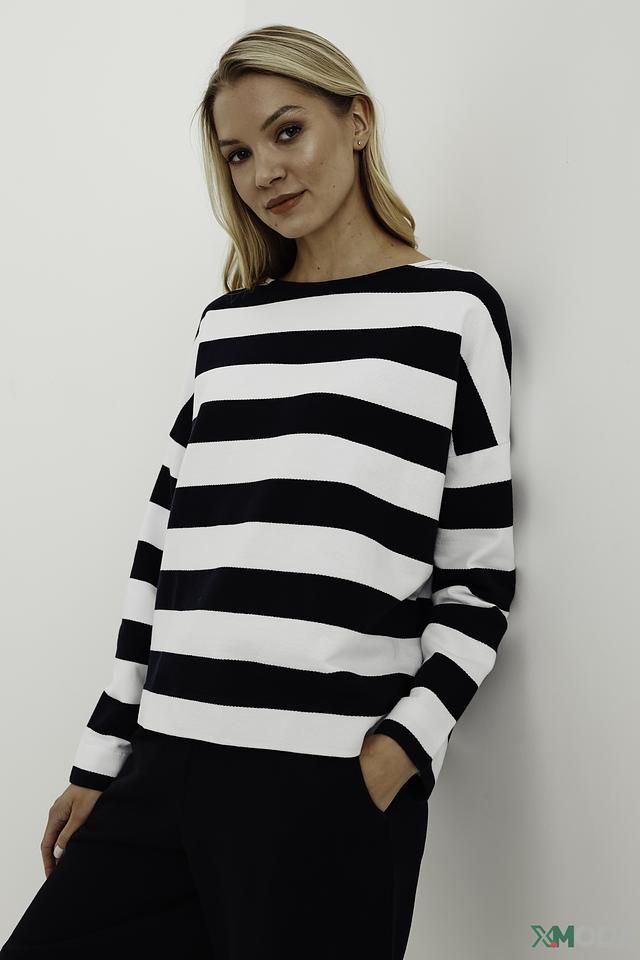 Женский пуловер Maerz чёрно-белого цвета – это стильная и комфортная модель на каждый день. Классический крой и полосатый узор делают его универсальным элементом гардероба. Состав: хлопок 100%