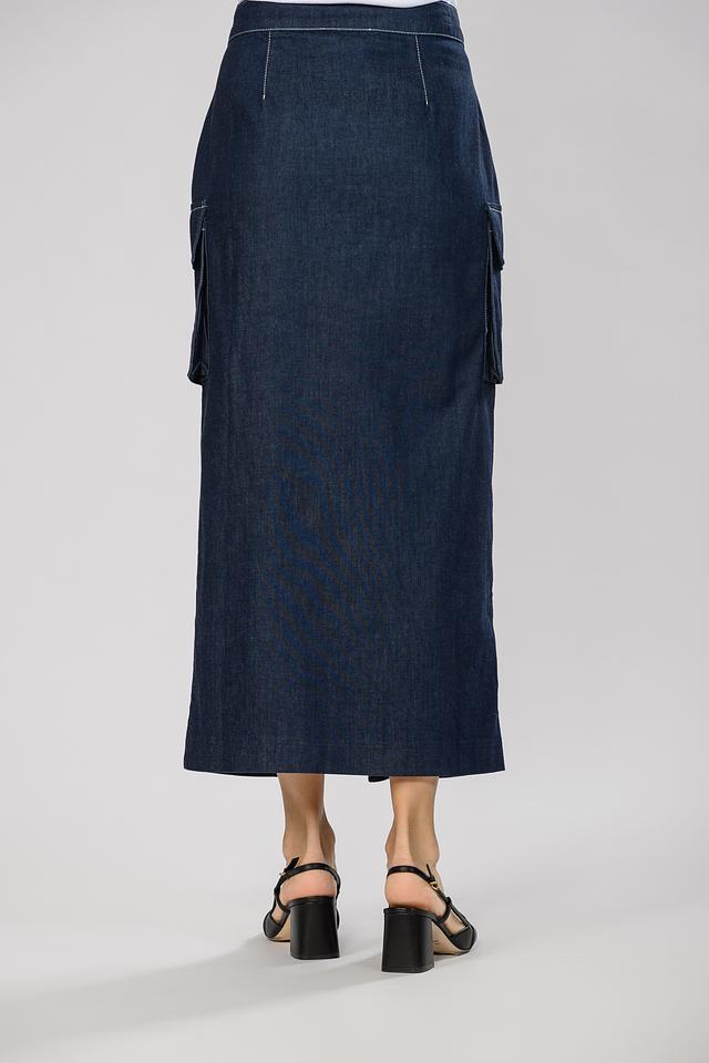 Джинсовая юбка Malej синего цвета – стильная и удобная модель длиной миди с функциональным карманом. Юбка выполнена из плотного денима с добавлением хлопка и эластана для комфорта и свободы движений. Состав: луоселл 55%, хлопок 43%, лайкра 2%
