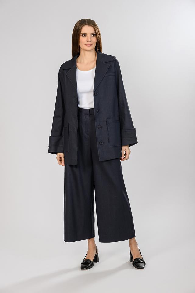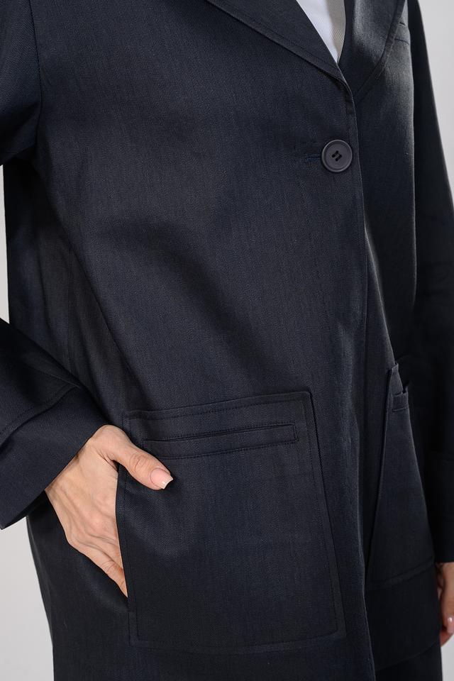 Синий жакет от Malej – стильное и комфортное решение для создания элегантного образа. Прямой крой и лаконичный дизайн делают его универсальным элементом гардероба. Жакет выполнен из натуральных материалов с добавлением эластана для удобства. Состав: лен 50%, вискоза 47%, эластан 3%