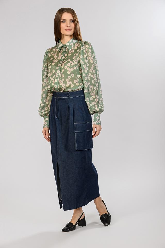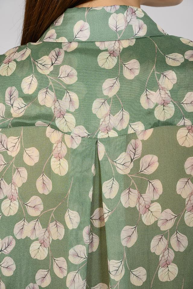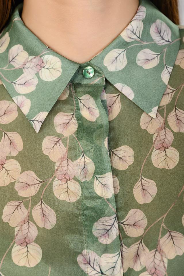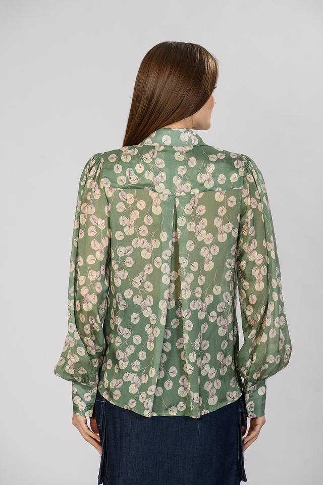 Блуза Malej зеленого цвета с нежным цветочным принтом станет отличным дополнением к вашему гардеробу. Модель выполнена из легкой ткани с рукавами-фонариками и застежкой на пуговицы. Состав: район 80%, шелк 20%