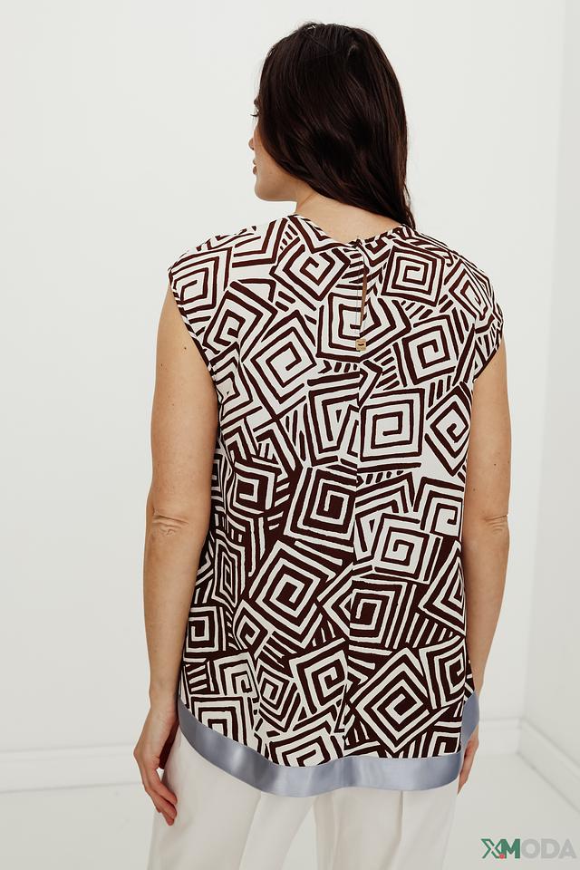 Эта блуза от Manila Grace – отличный выбор для создания элегантного и современного образа. Блуза выполнена в коричневой цветовой гамме и украшена ярким геометрическим принтом, который придает ей индивидуальность.