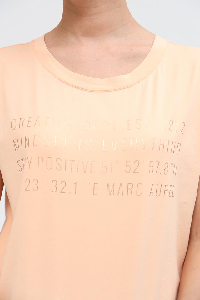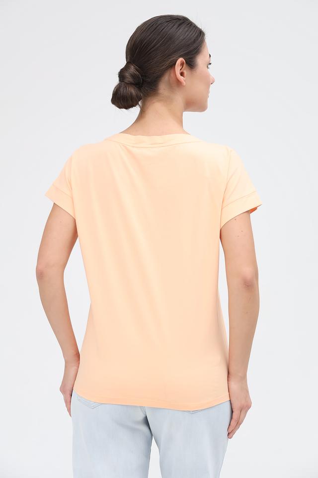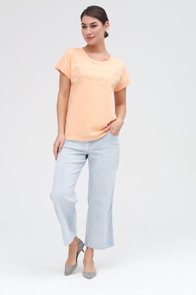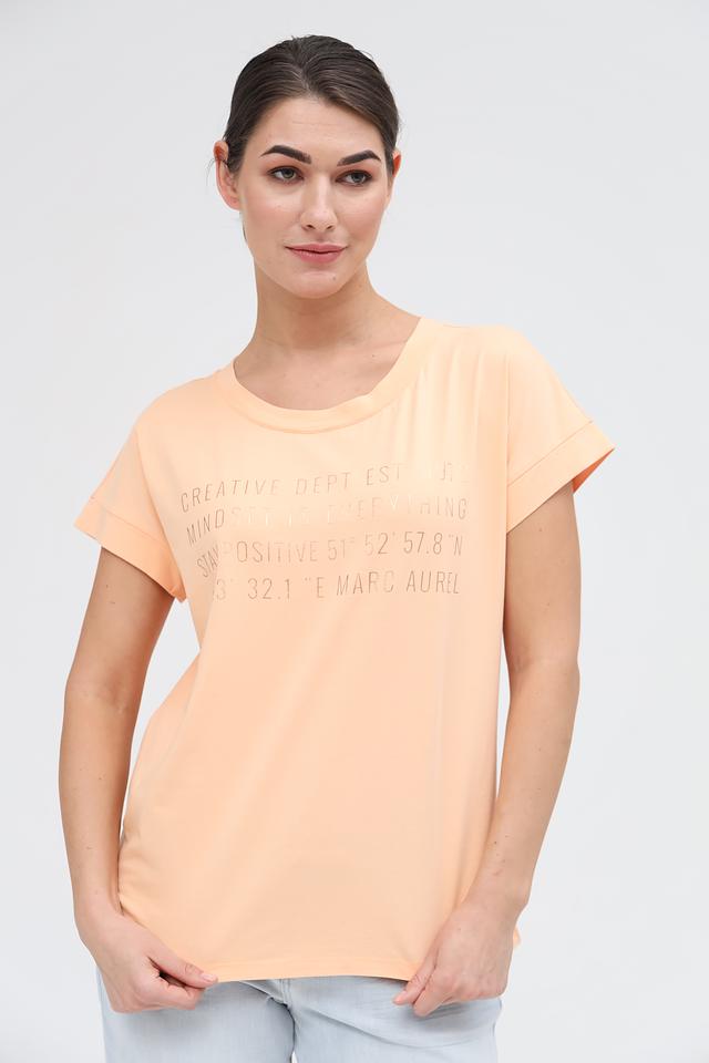 Женская футболка Marc Aurel персикового цвета с оригинальным принтом. Изготовлена из 100% хлопка, обеспечивающего комфорт и воздухопроницаемость. Стильный и удобный вариант для повседневного образа. Состав: хлопок 100%