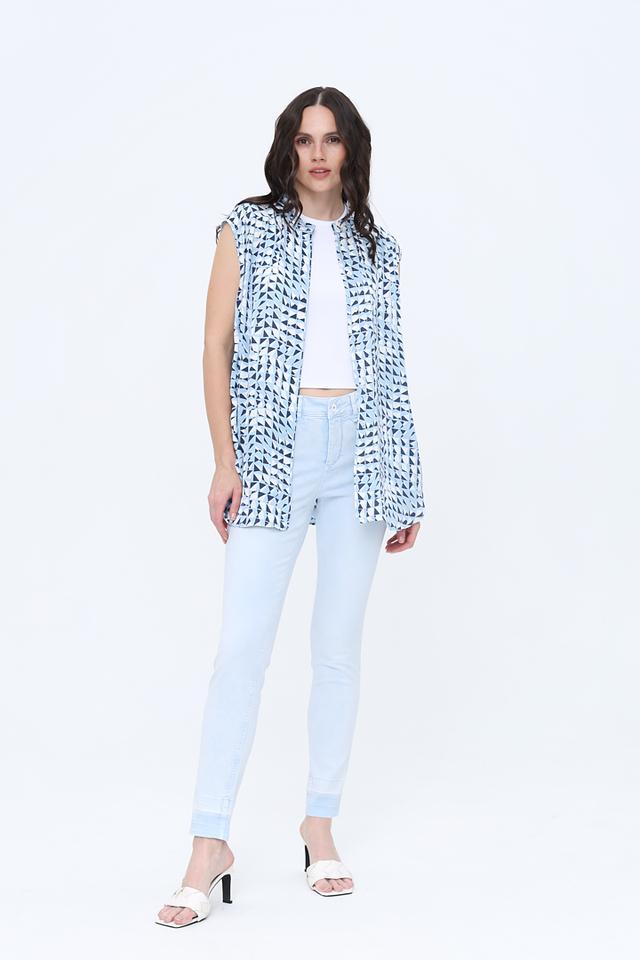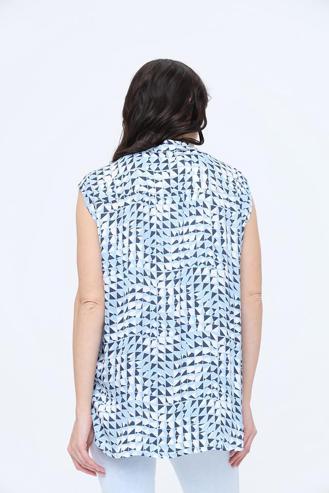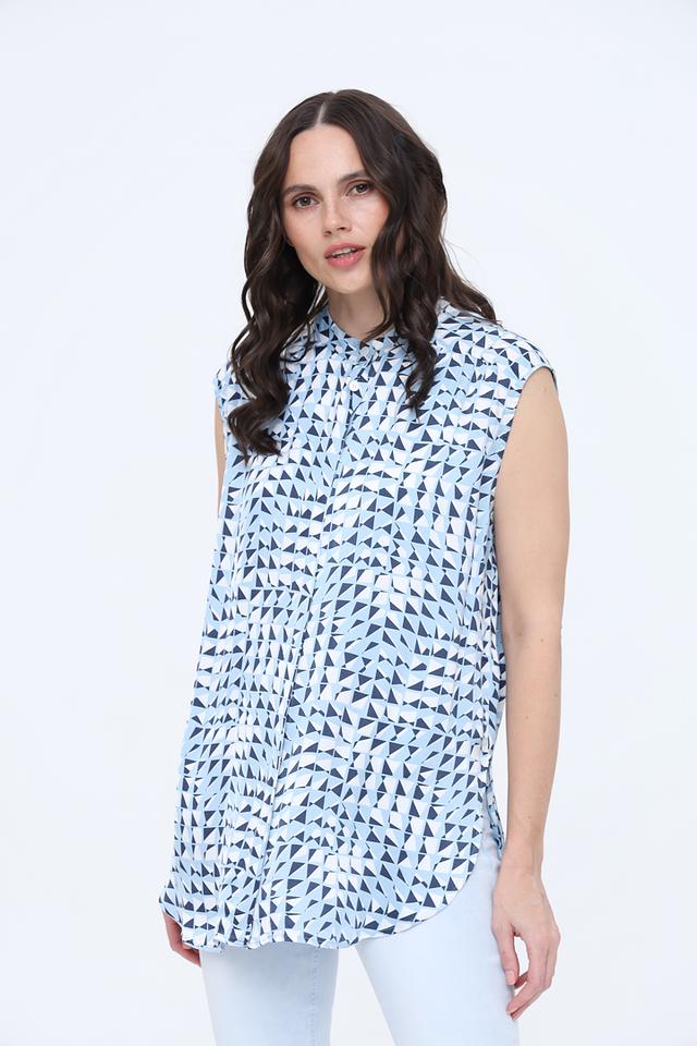 Топ Marc Aurel голубого цвета с оригинальным геометрическим принтом станет стильным дополнением вашего гардероба. Модель без рукавов выполнена из 100% вискозы, что обеспечивает комфорт и лёгкость в носке. Состав: вискоза 100%