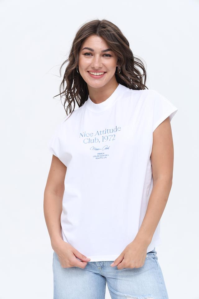 На передней части футболки расположен оригинальный принт с надписью "Nice Attitude Club, 1972", который придает ей индивидуальность и стиль. Короткие рукава и свободный крой обеспечивают комфорт в жаркую погоду.