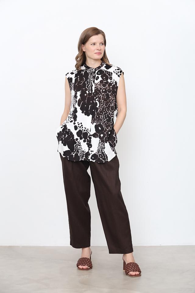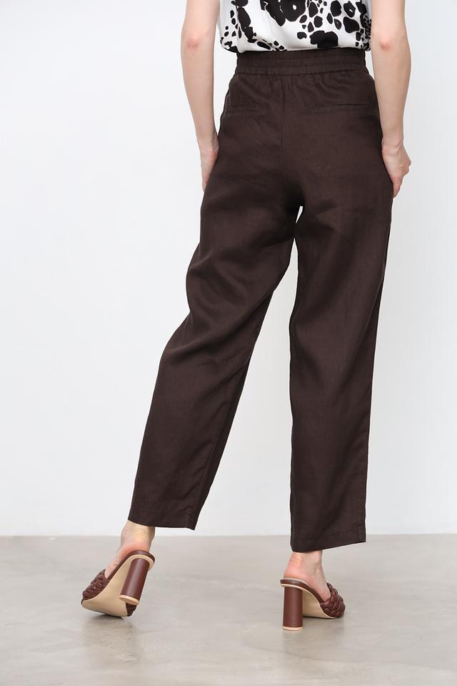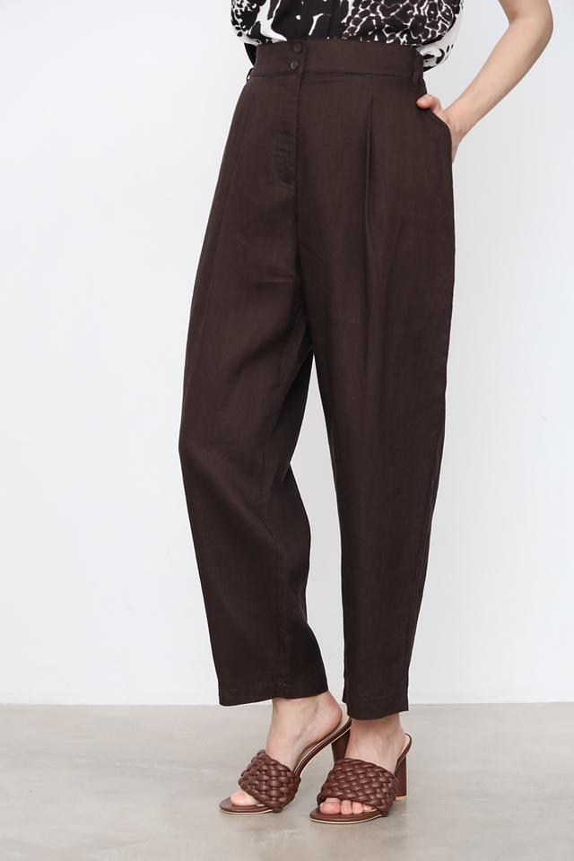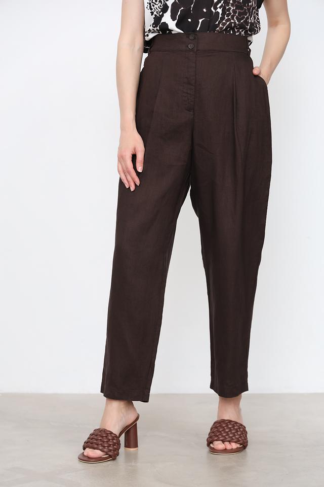 Брюки имеют широкий крой, который создает расслабленный и элегантный образ. Высокая посадка подчеркивает талию и визуально удлиняет ноги. Классический коричневый цвет легко сочетается с различными элементами одежды, позволяя создавать разнообразные стильные образы.