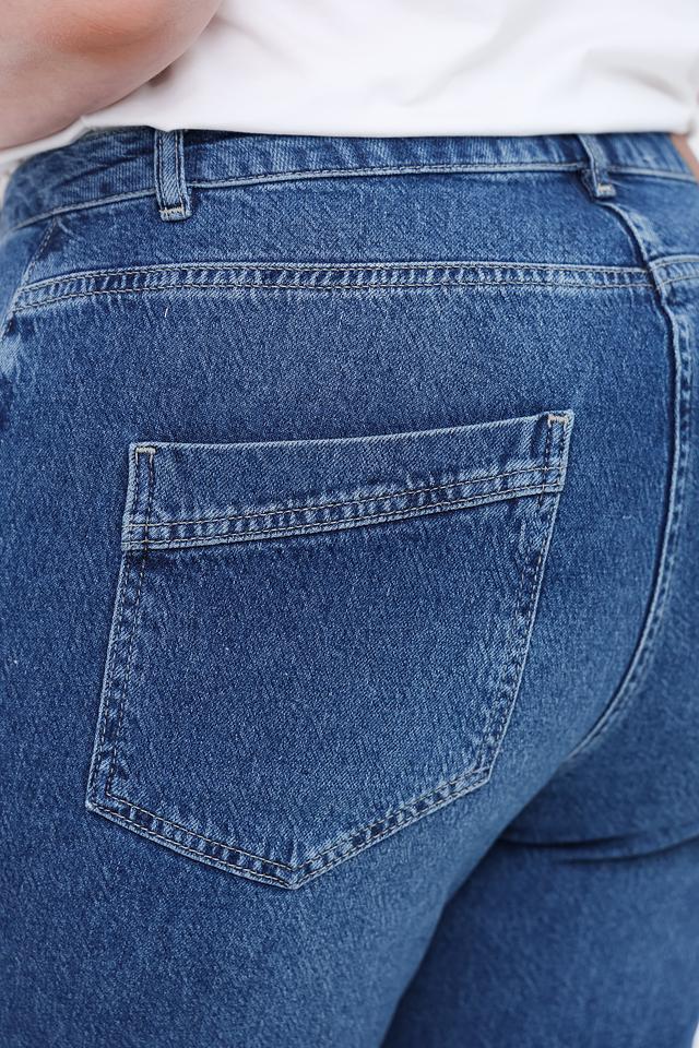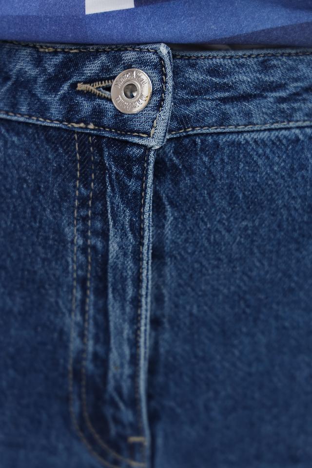 Джинсы имеют завышенную талию, которая подчеркивает фигуру и создает современный силуэт. Широкие штанины, слегка зауженные к низу, добавляют образу непринужденности. Классическое оформление карманов и аккуратные швы делают эти джинсы универсальным элементом гардероба.