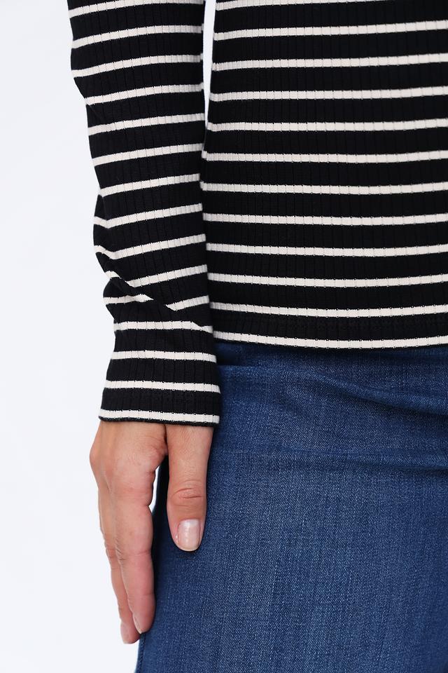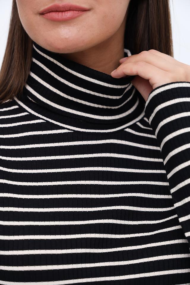 Водолазка Marc Aurel чёрно-белого цвета – это стильная и универсальная модель, выполненная в классическую полоску. Изготовлена из мягкого и приятного к телу трикотажа, обеспечивающего комфорт в носке. Состав: вискоза 86%, полиэстер 11%, эластан 3%