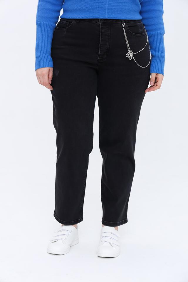 Особенностью этих джинсов является декоративная цепочка, прикреплённая к карману, которая добавляет образу дерзости и индивидуальности. Джинсы выполнены из высококачественного хлопка с добавлением лиоцела и эластана, что обеспечивает мягкость, приятные тактильные ощущения и небольшую эластичность.
