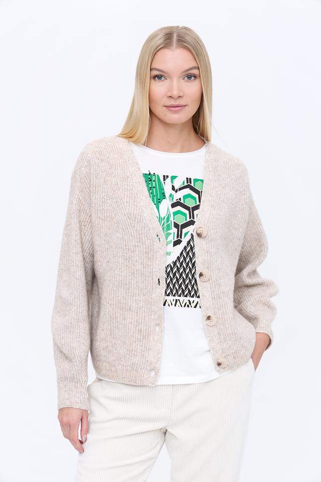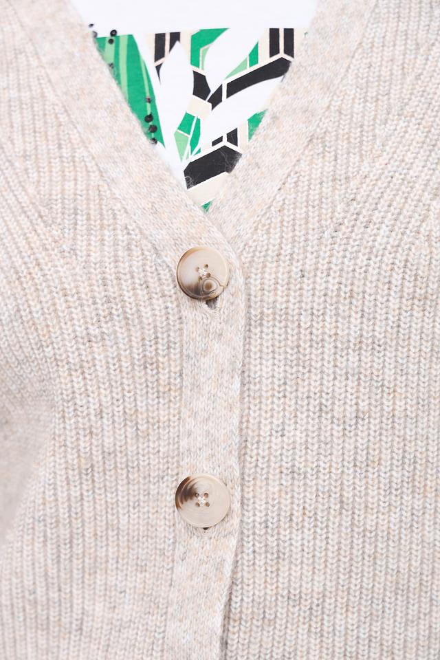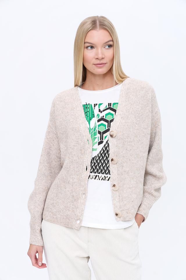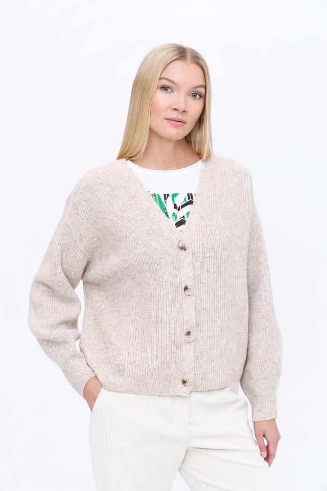 Бежевый кардиган Marc Aurel из мягкого вязаного полотна станет отличным дополнением к вашему гардеробу. Модель с V-образным вырезом и пуговицами, рукавами 3/4 и свободным кроем. Состав: полиэстер 62%, полиакрил 31%, шерсть 7%