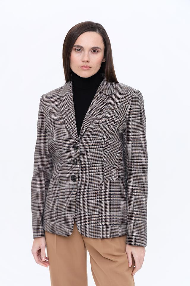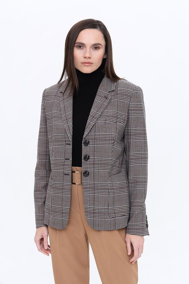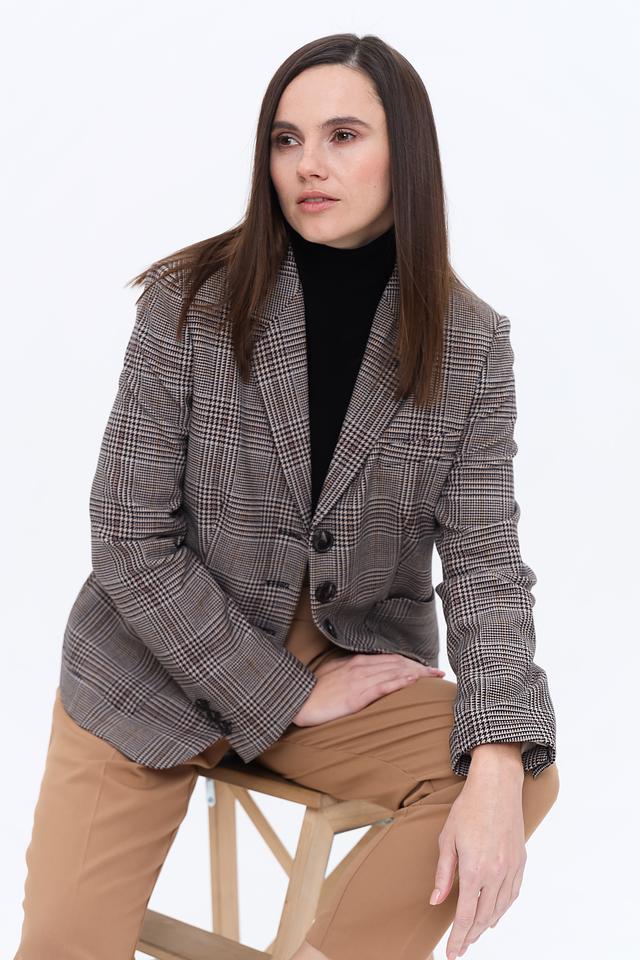 Жакет Marc Aurel коричневого цвета в классическую клетку – стильное и универсальное решение для создания элегантного образа. Прямой крой и застежка на пуговицы подчеркнут вашу индивидуальность и добавят уверенности в любой ситуации. Состав: полиэстер 62%, вискоза 33%, эластан 5%