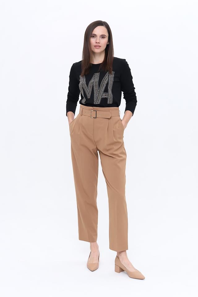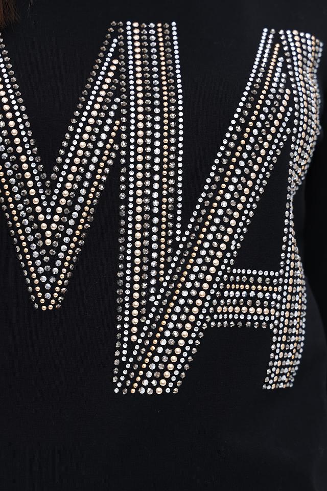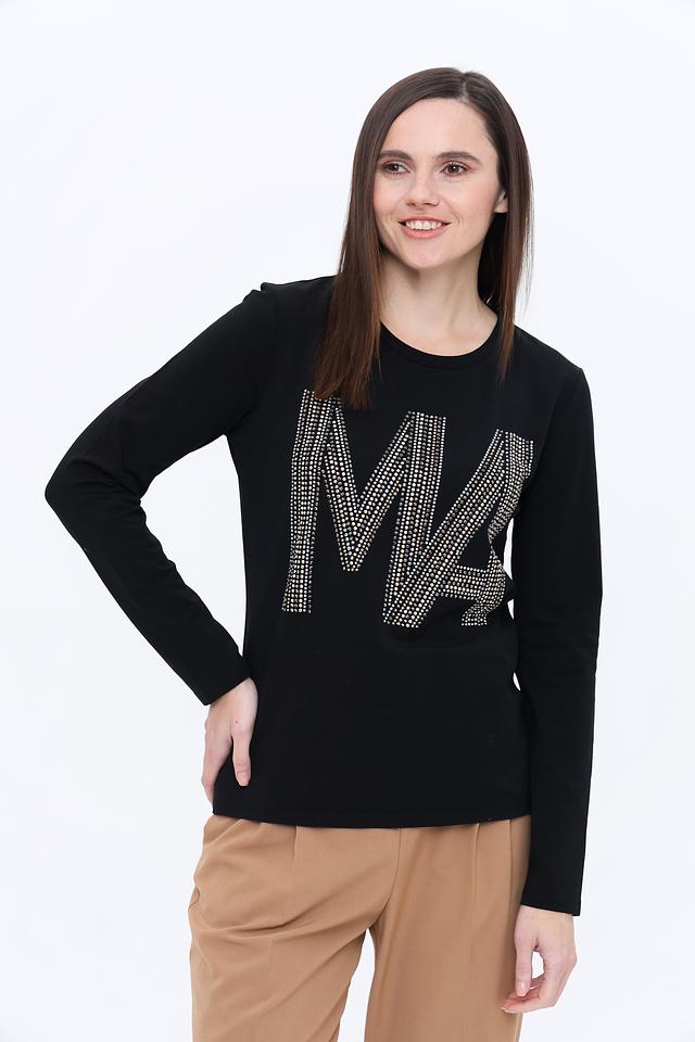 Особенностью модели является декоративный логотип бренда, выполненный из мерцающих страз, что придает изделию изысканность и привлекательность. Лонгслив имеет прямой крой и удобную длину рукава.