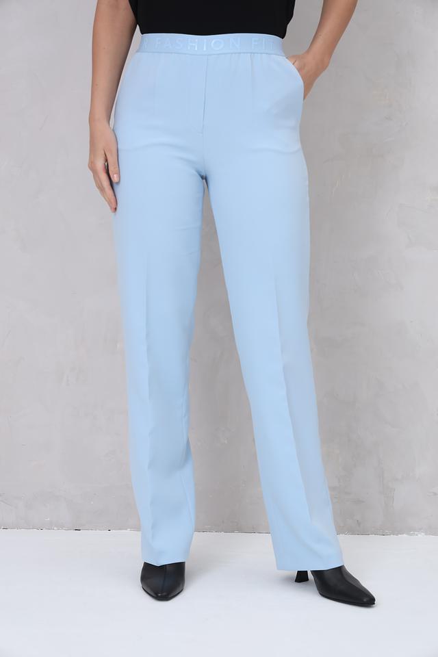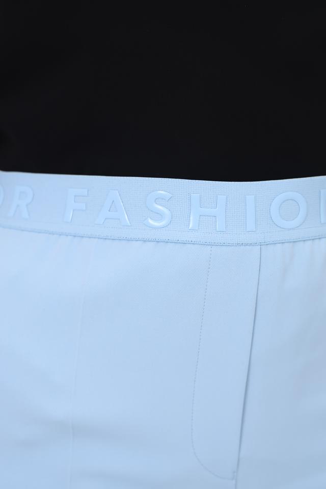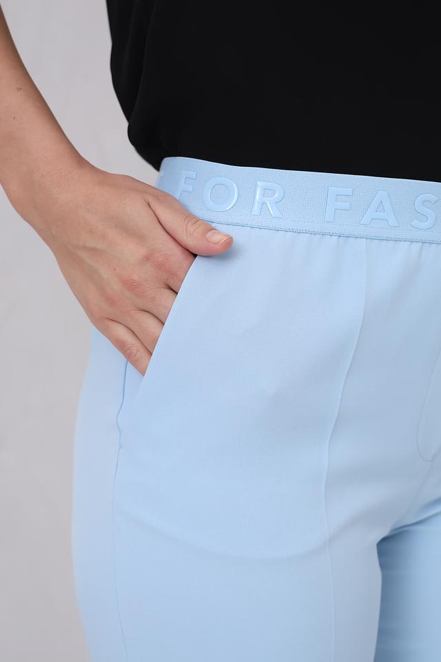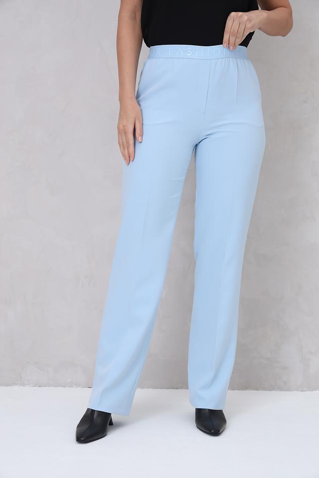 Брюки имеют прямой крой, обеспечивающий свободу движений и комфорт в течение всего дня. Пояс дополнен надписью, придающей изделию индивидуальность и современный вид. Застежка – молния и пуговица.