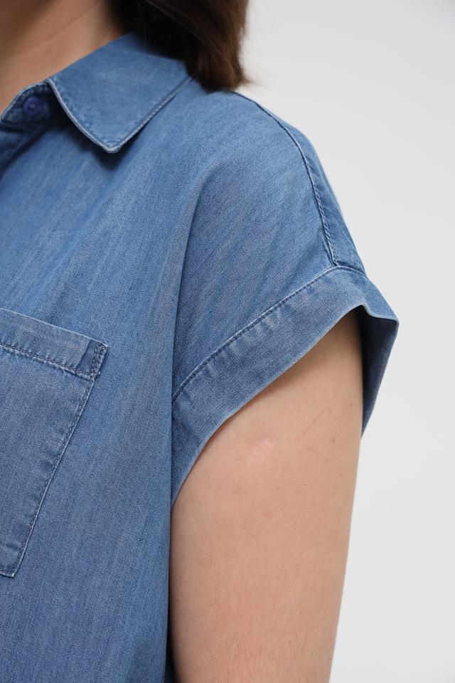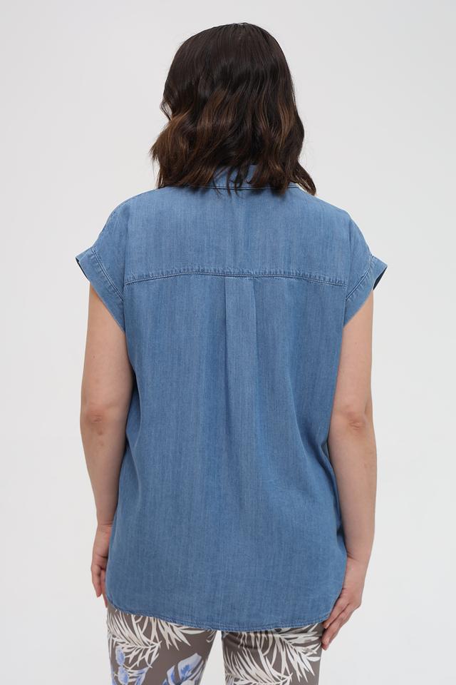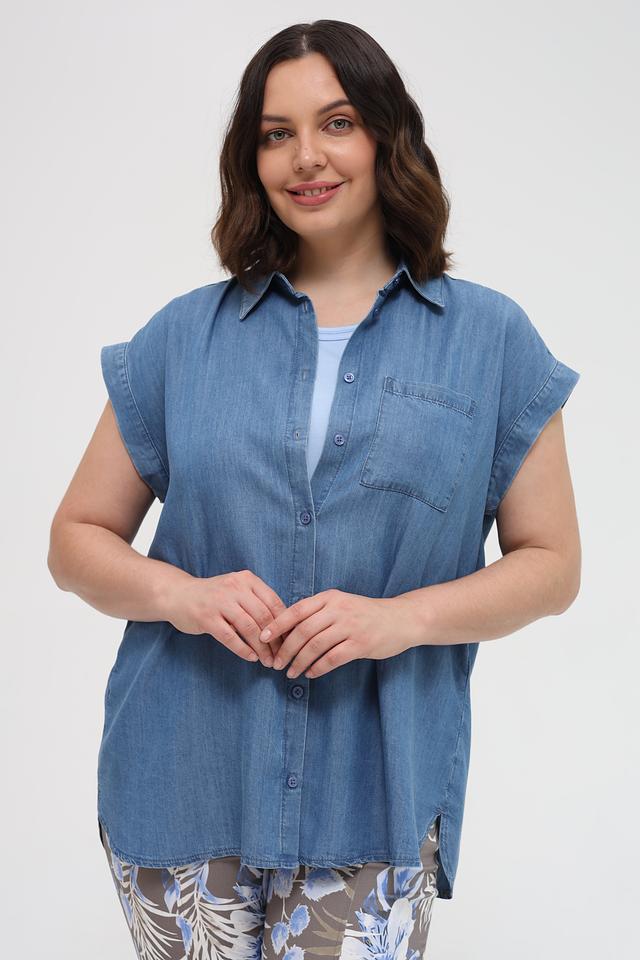 Джинсовая рубашка Marc Aurel голубого цвета с коротким рукавом выполнена в свободном крое. Модель с классическим воротником и застёжкой на пуговицы, дополнена накладным карманом на груди. Состав: лиоцел 100%