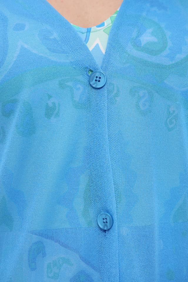 Жакет Marc Aurel небесно-голубого цвета с оригинальным цветочным принтом. Изготовлен из вискозы и полиэстера, обеспечивающих комфорт и легкость в носке. Состав: вискоза 78%, полиэстер 22%
