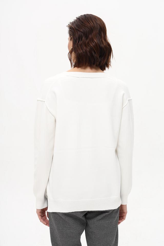 Этот пуловер от Marc Aurel выполнен в классическом белом цвете и имеет V-образный вырез, который визуально удлиняет шею и делает образ более изящным.
