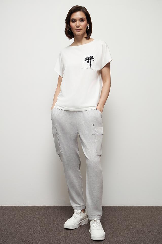 Брюки выполнены из мягкой и приятной к телу ткани, состоящей из вискозы и металлизированной нити. Эластичный пояс с кулиской обеспечивает удобную посадку по фигуре. Модель дополнена функциональными карманами, которые добавляют практичности.