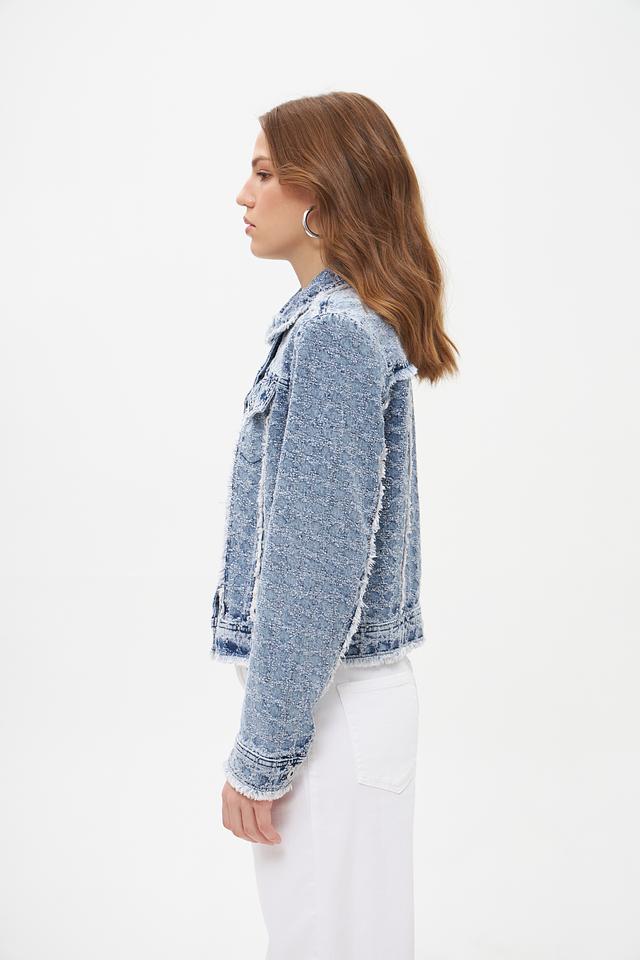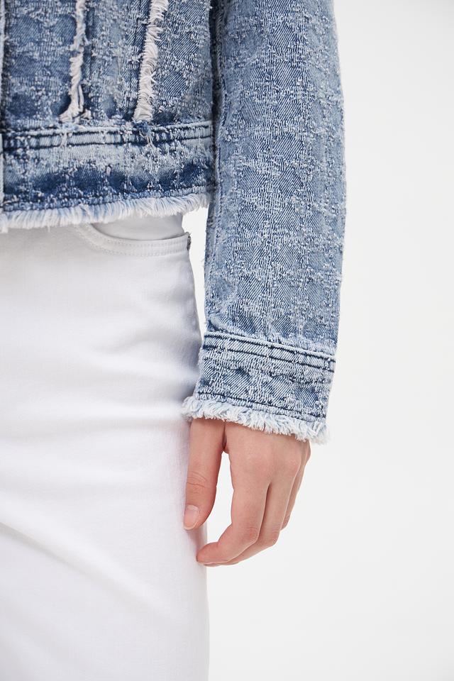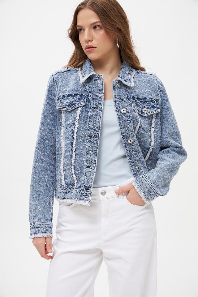 Голубая джинсовая куртка Marc Aurel с эффектом потертости и отделкой бахромой. Изготовлена из 100% хлопка, обеспечивающего комфорт и воздухопроницаемость. Стильный и универсальный элемент гардероба для создания повседневных образов. Состав: хлопок 100%