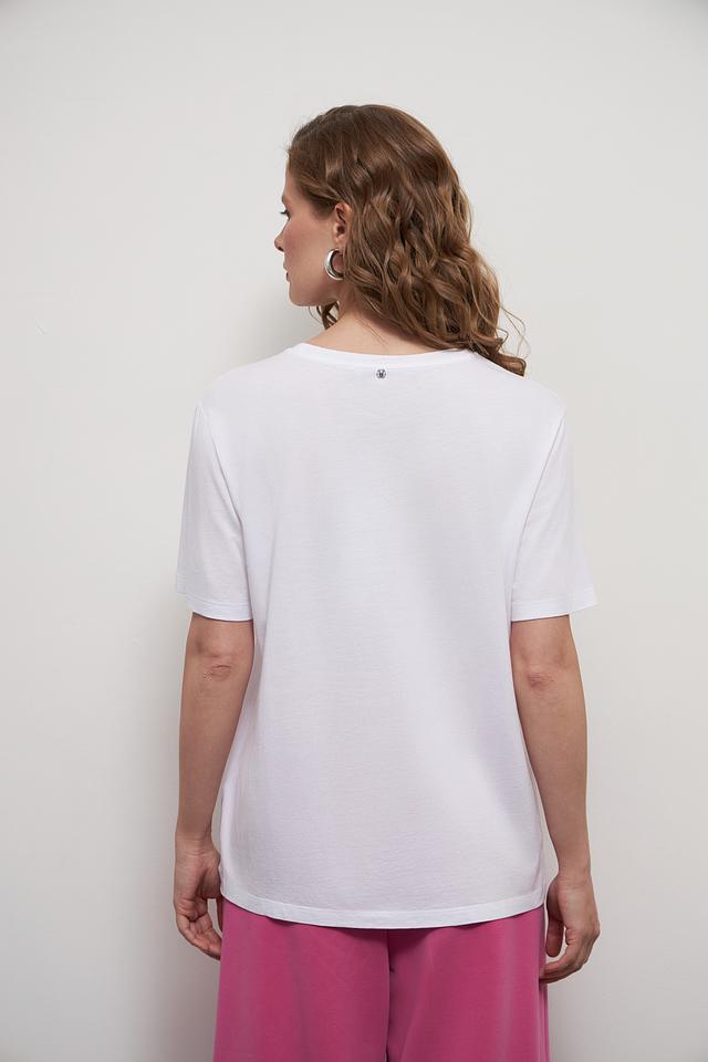 Фасон футболки свободный, прямой крой обеспечивает комфорт в носке. Короткие рукава и классический круглый вырез горловины делают ее универсальной для различных стилей и образов. Состав ткани: 50% хлопок, 50% модал.