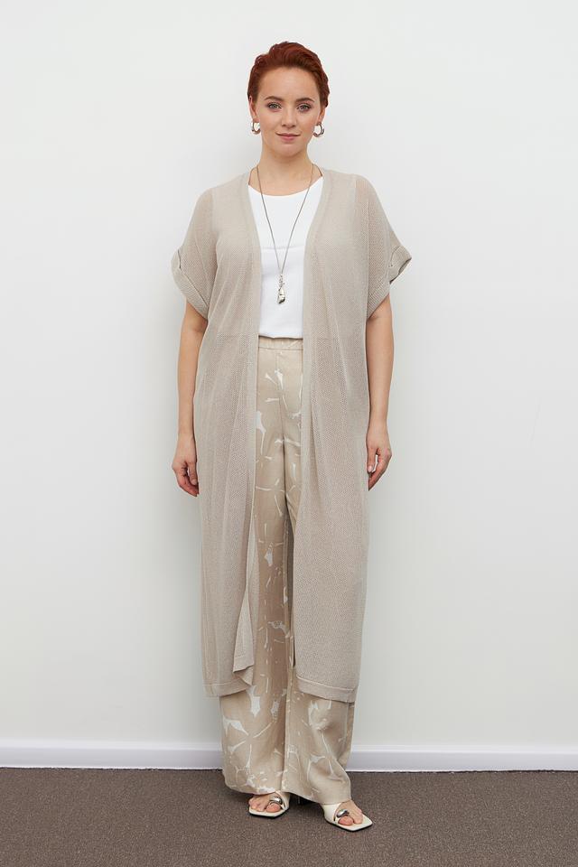 Этот жакет от Marc Aurel выполнен в светло-бежевом цвете и имеет удлиненный силуэт. Модель выполнена из мягкого, приятного к телу вязаного полотна, в составе которого преобладает вискоза, обеспечивающая комфорт и воздухопроницаемость.