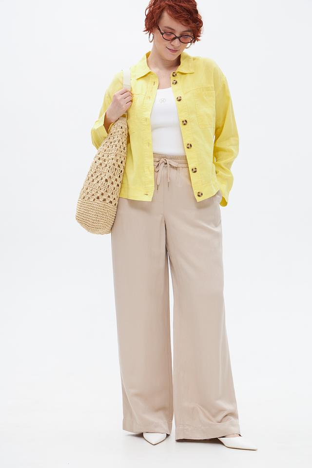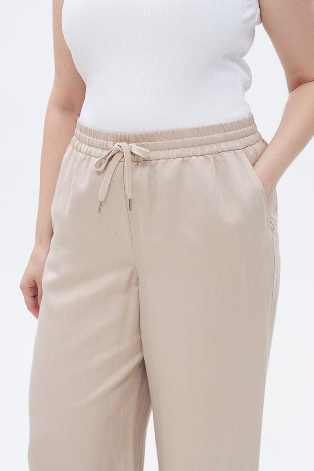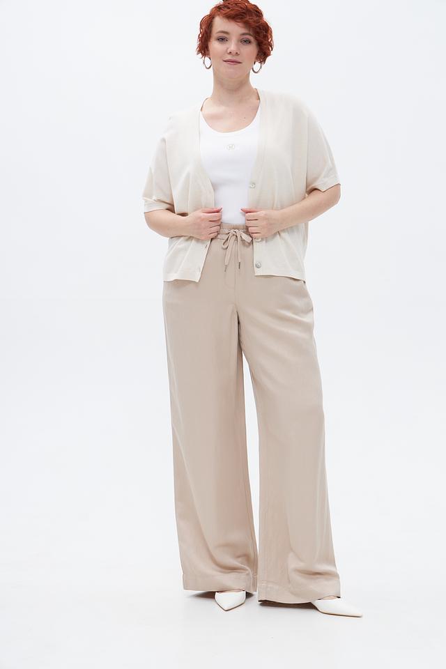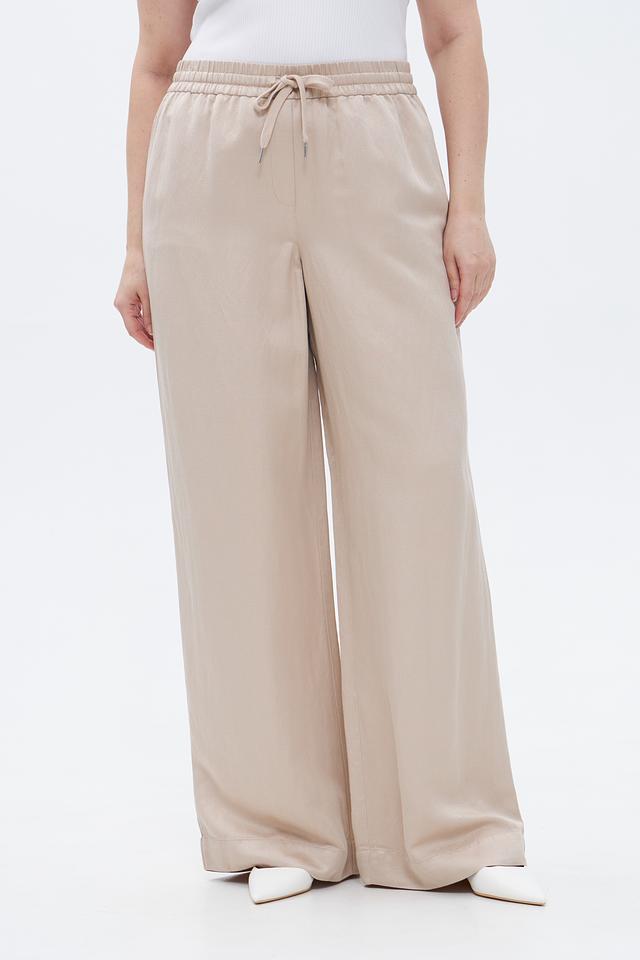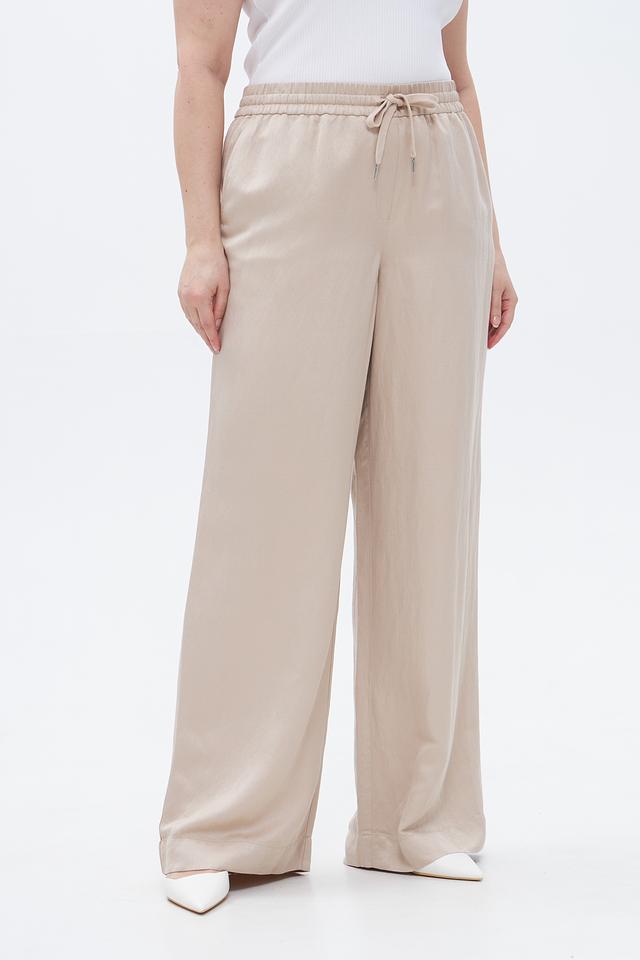 Бежевые брюки палаццо от Marc Aurel из вискозы и льна. Модель с завышенной талией и эластичным поясом на кулиске, обеспечивающим комфортную посадку. Идеальный выбор для создания стильного и расслабленного образа. Состав: вискоза 55%, лен 45%