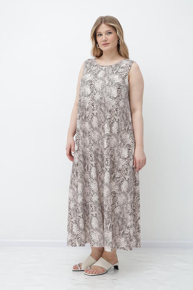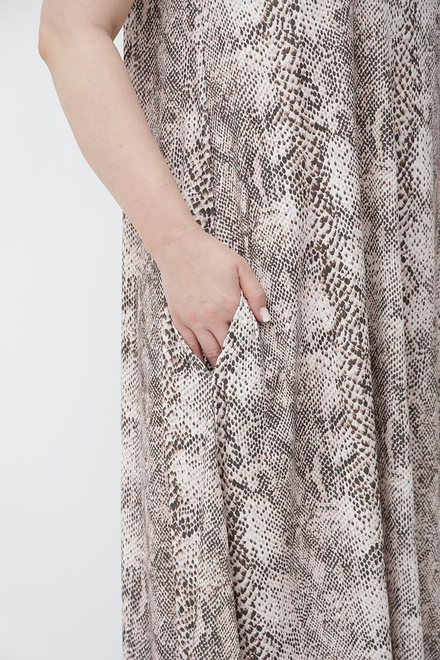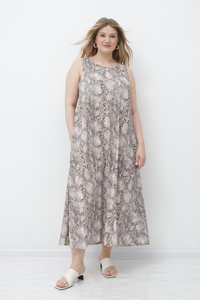 Это платье от Marc Aurel станет прекрасным дополнением к вашему гардеробу. Платье выполнено в бежевых тонах с эффектным принтом, напоминающим окрас рептилии.