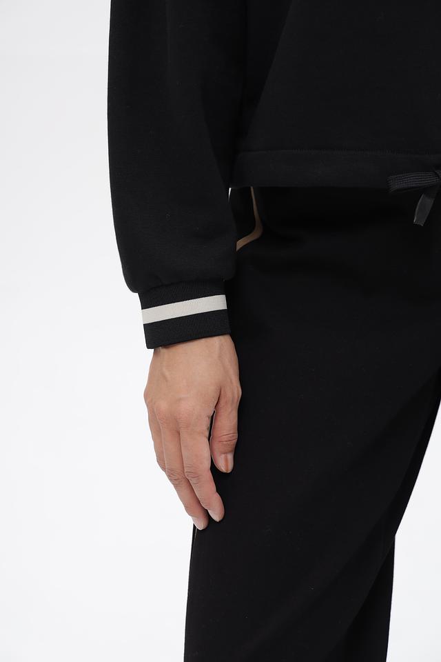 Чёрный пуловер Marc Aurel из хлопка с полиэстером, украшен белым логотипом бренда и контрастной полосой на рукавах и горловине. Удобный крой и мягкий материал обеспечивают комфорт в повседневной носке. Состав: хлопок 60%, полиэстер 40%
