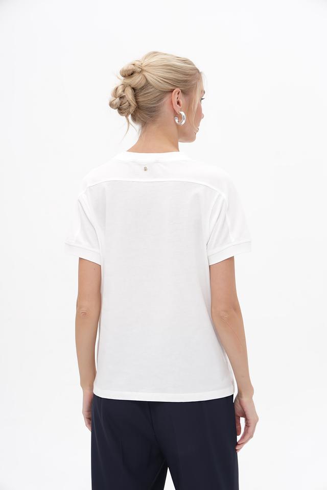 Благодаря своему лаконичному дизайну, эта футболка легко сочетается с различными элементами одежды — от джинсов и шорт до юбок и брюк. Она идеально подходит для создания как повседневных, так и более нарядных образов.