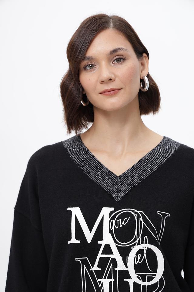 Чёрный пуловер Marc Aurel с декоративным вышитым логотипом. Изготовлен из мягкой вискозы с добавлением полиэстера и полиамида. Состав изделия включает метализированную нить для сияющего эффекта. Состав: вискоза 49%, полиэстер 28%, полиамид 22%, метализ.нить 1%