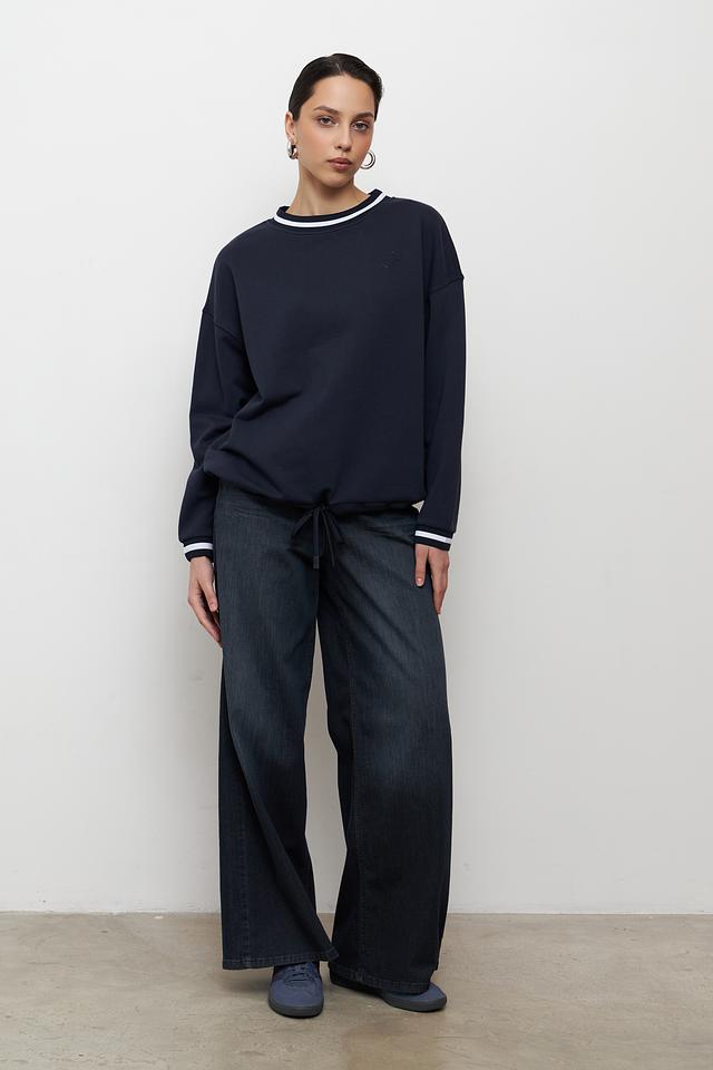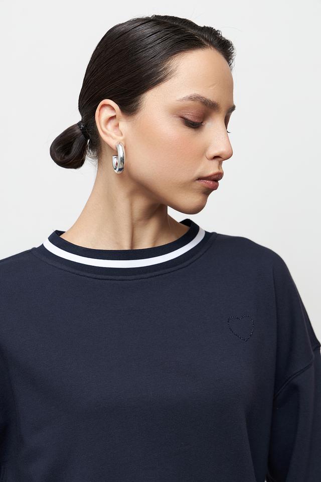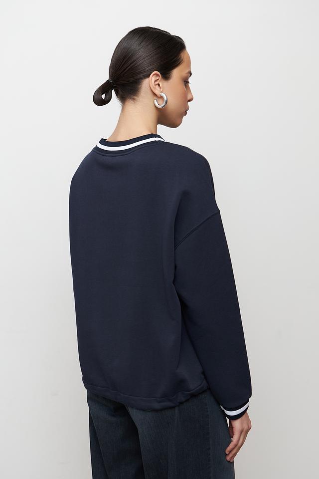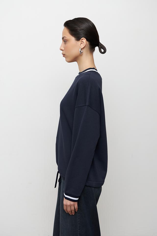 Модель отличается удобным кроем и мягкой текстурой благодаря составу: 60% хлопок и 40% полиэстер. Белая полоса на горловине, манжетах и нижней части придает пуловеру спортивный шик и визуально освежает образ.
