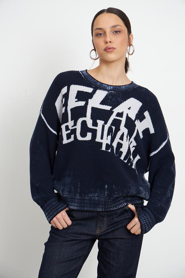 Стильный пуловер Marc Aurel темно-синего цвета с оригинальным белым принтом. Изготовлен из мягкого хлопка с добавлением вискозы для комфорта и приятных тактильных ощущений. Модель имеет свободный крой и слегка необработанные края. Состав: хлопок 98%, вискоза 2%