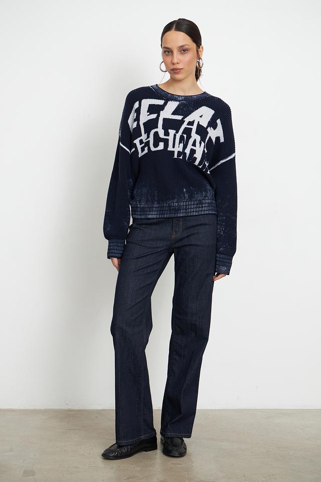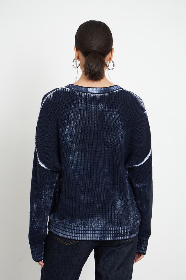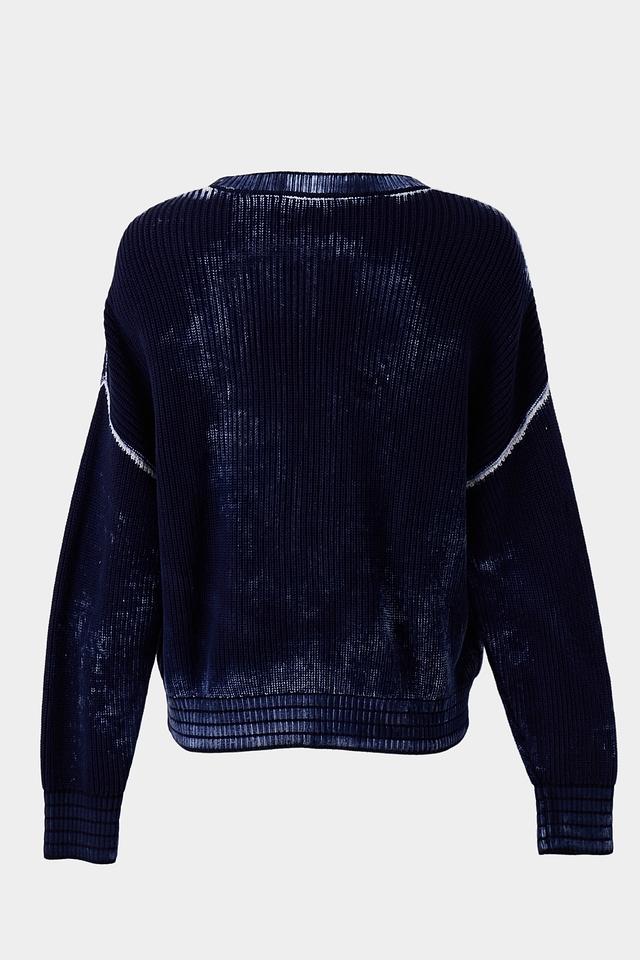 Модель имеет свободный крой, который обеспечивает комфорт в носке и позволяет создавать различные образы. Необработанные края добавляют пуловеру непринужденности и оригинальности.