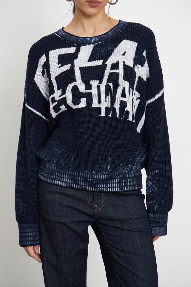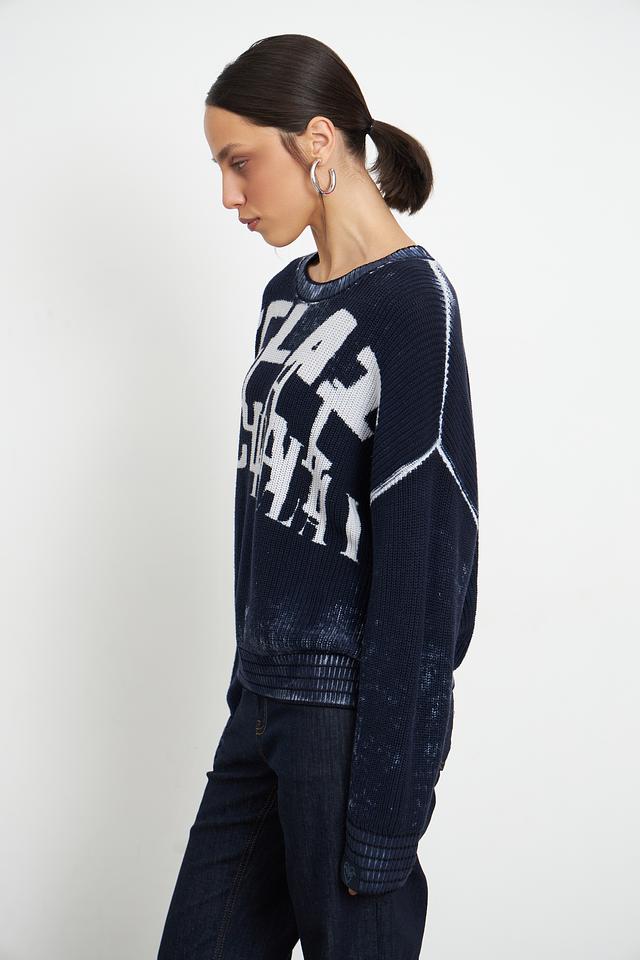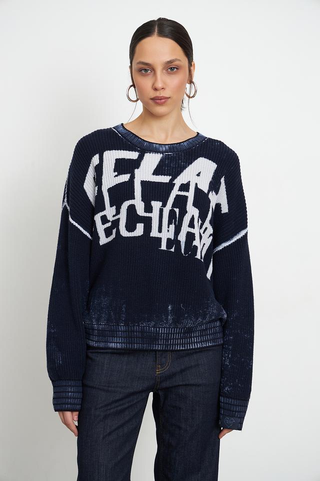 Этот пуловер от Marc Aurel станет отличным дополнением к вашему гардеробу. Выполненный в темно-синем цвете, он украшен крупным белым принтом, который придает ему современный и запоминающийся вид.